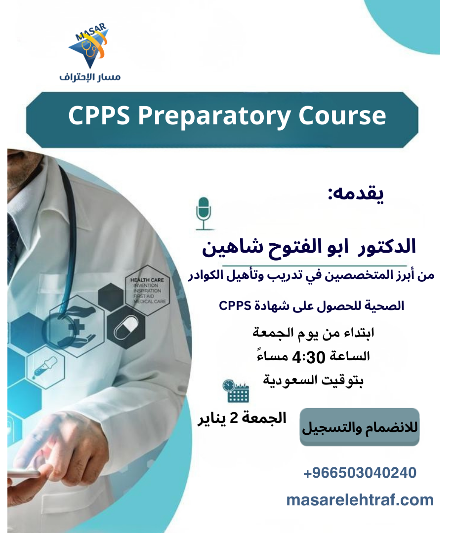 تأهيل الكوادر الصحية لاجتياز امتحان CPPS من أول محاولة بإذن الله،